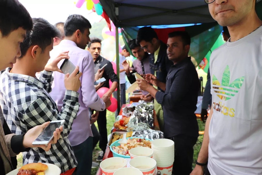 随着足球友谊赛落下帷幕,各国特色美食展示环节开始,来自不同国家的学生纷纷展示出独具特色的美食,令人食指大动。不同风味的美食还吸引了许多中国学生及老师前来品尝,贵州理工学院副院长梁杰也到现场品尝美食,同国际学生合影,并对预祝此次活动取得圆满成功。