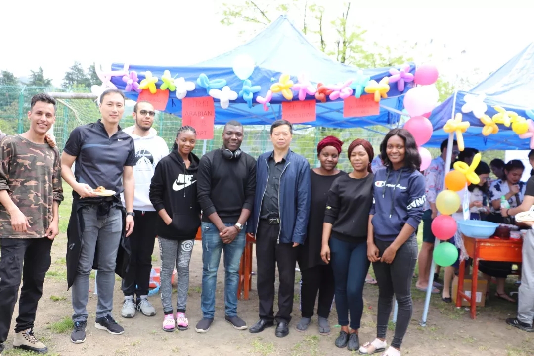 随着足球友谊赛落下帷幕,各国特色美食展示环节开始,来自不同国家的学生纷纷展示出独具特色的美食,令人食指大动。不同风味的美食还吸引了许多中国学生及老师前来品尝,贵州理工学院副院长梁杰也到现场品尝美食,同国际学生合影,并对预祝此次活动取得圆满成功。