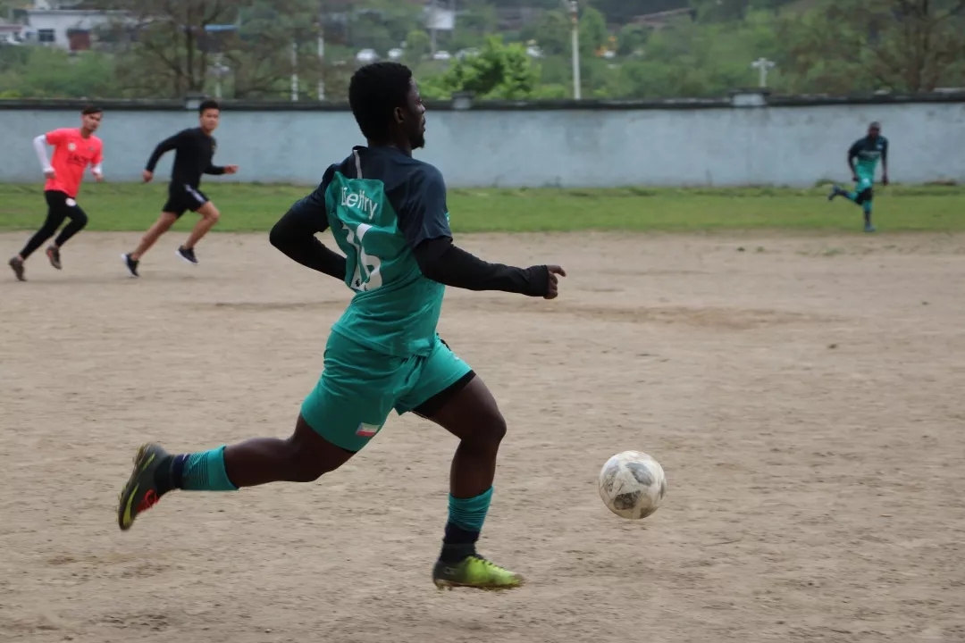 上午9时,在裁判一声哨响下,足球友谊赛在沙地足球场拉开序幕,国际学生们在赛场上尽情奔跑,挥洒汗水,引得观众席不时爆发出阵阵喝彩。