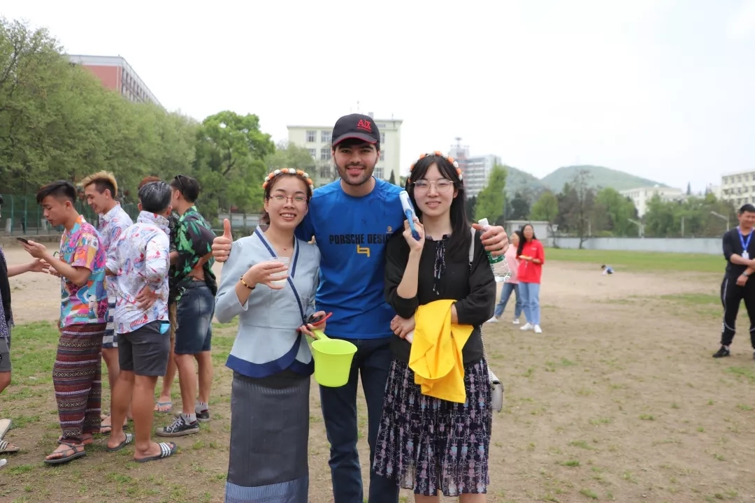 美食展示环节后,国际学生开始共同庆祝老挝泼水节。老挝同学在现场举行了泼水节仪式,并向所有同学及老师表达了祝福。随后,各国同学在一片欢声笑语中相互泼水祝福,欢快的气氛弥漫了整个沙地足球场。