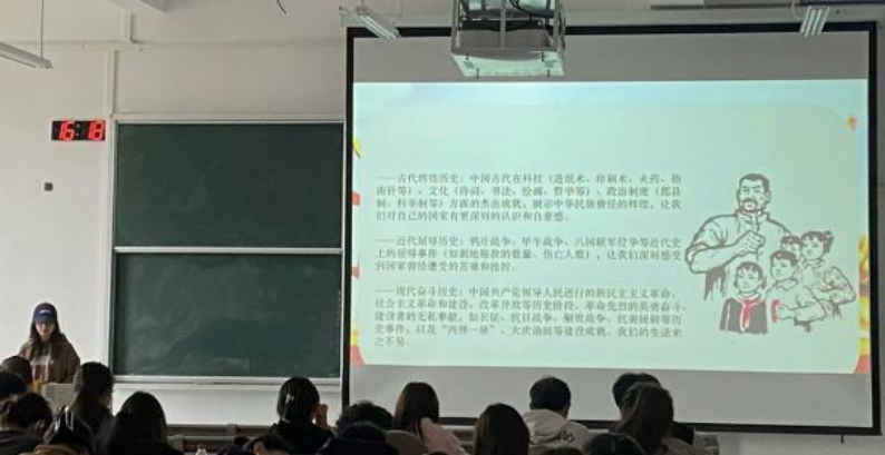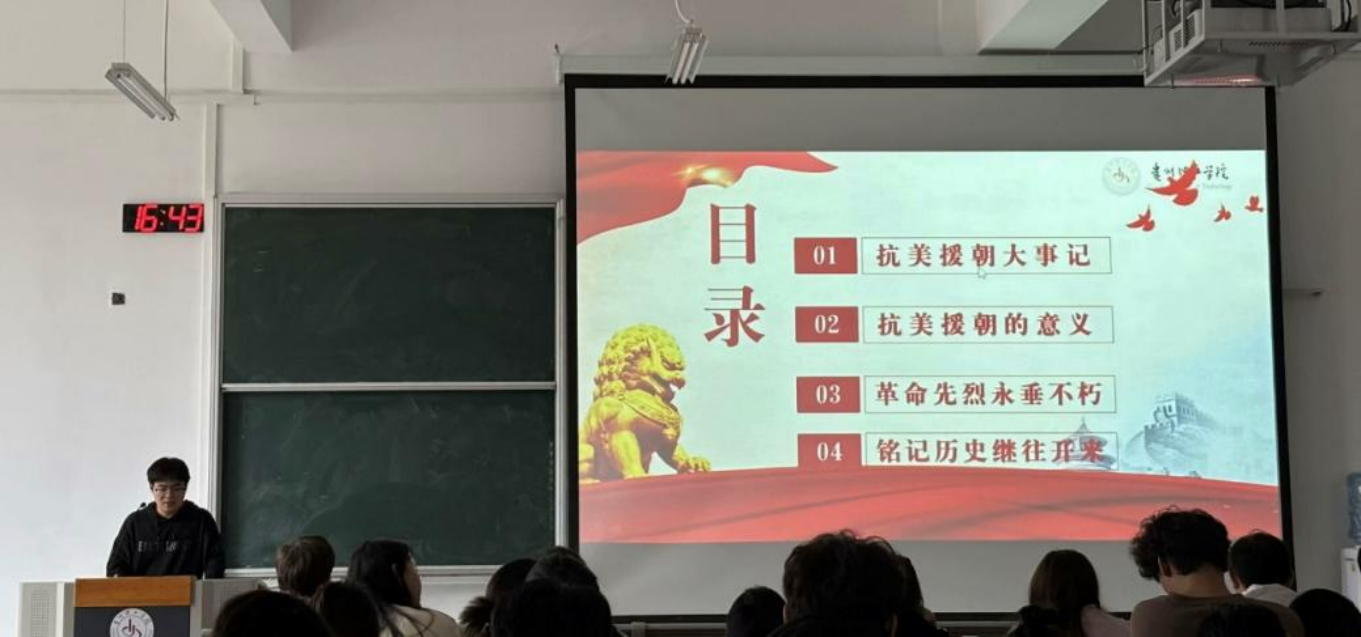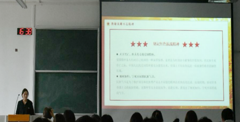 张逍同学首先带大家回顾了九一八事变,揭示了战争的创伤,然后介绍了传统节日的文化内涵与意义以及号召大家对文化遗产的保护,从而引发大家对自己行为的思考,呼吁大家铭记历史继往开来,为中国的美好未来不懈奋斗;杨小韦同学以“以史为鉴,传承精神“为入题点,以五四运动、一二九运动以及其他历史时期的大学生贡献为例,鼓励大学生学习历史知识,培养爱国情怀;付会单同学带我们重温了1840年到1945年间的苦难与战争,讲述了大学生应该通过教育创新和团结继往开来,并将其转化为推动未来发展的动力;杨宏同学的宣讲围绕抗美援朝展开,并分享了杨根思、许家明、邱少云等革命先烈的英雄事迹,铭记历史,缅怀先烈,致敬英雄。
