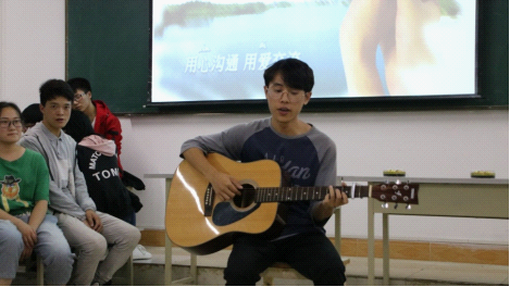 接着则是班级才子的吉他弹唱《成都》等歌曲,在美妙的歌声下同学们一起歌唱,活跃的气氛依旧未减。同学们演唱完毕之后同学们余兴未了,则邀请班主任,学长和学姐各展歌喉,为其加油。学习委员则为我们带来了慷慨激昂的诗歌朗诵,大家的心情也在音乐与歌颂中平复下来,细细品味诗句中的情感。