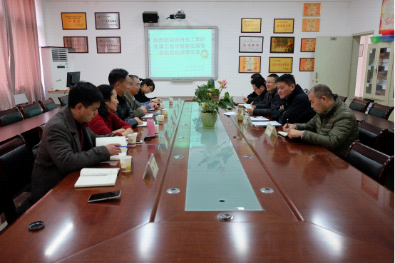 11月23日下午,我院党总支书记徐平、院长唐安江、副院长杨春一行七人赴贵州师范学院化学与生命科学学院考察交流学习。会谈在化生学院会议室举行,出席交流会的有化生学院党委书记韩宝银、院长宋万琚、副院长王毓以及各专业学科负责人。