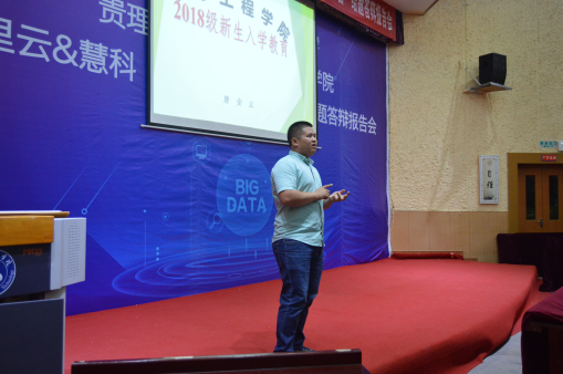 唐安江则为新鲜化工人的学习指明了努力的方向,他细细讲解18级化工学子的培养方案,学院将培养同学们成为“强责任,精技术,善管理,重实践,求创新”的高素质应用人才,面向化工及过程工程相关行业,服务贵州、辐射全国。最后,他提出了对同学们的希冀“勤奋好学,严谨守信,团结友爱,勇于担当”16字,希望同学们谨记心中并付诸实际。