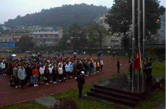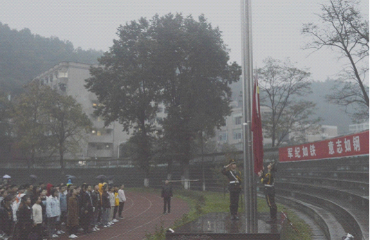 为了增强广大学生的爱国主义热情,提高学生的国家意识和民族意识,10月5日上午7:10,化学工程学院在贵州理工学院田径场举行了升国旗活动。升国旗,奏国歌!国歌响起,尽管天空中秋雨连绵,一百多位同学放下雨伞,全体肃立,注视着鲜艳的五星红旗缓缓升起。