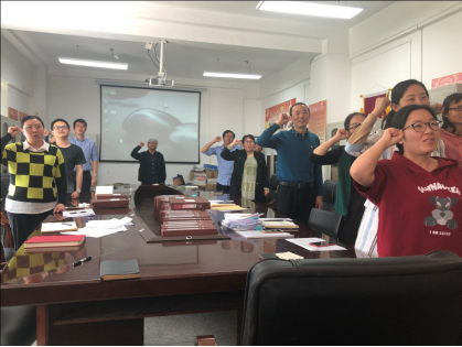 会后,宋明江组织全体党员重温入党誓词,重温入党初心,强化党员意识;重温建校初心,聚力合格评估;弘扬筹建精神,决战决胜合格评估。