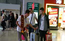 此次迎新,学校在金阳客车站,贵阳北站,贵阳站设立迎新接待站。迎新工作人员早早赶往现场,每一趟车一到站,新生和家长一下车,众多的迎新志愿者马上微笑着迎上去,“你好”,“欢迎好到贵阳”,并热情“抢”下新生和家长手中沉重的行李。志愿者们热情周到的服务很快消除了新生初来炸到的陌生感,拉近了新生和学校之间的距离。