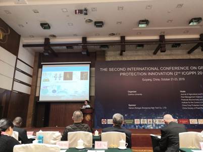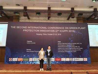 2019年10月21-23日,我院柏松教授和朱芸莹老师应邀参加了在贵阳举行的第二届绿色植保技术创新国际高端论坛(TheSecond International Conference on Green Plant Protection Innovation)。该论坛由贵州大学、美国农业与食品化学杂志(Journal of Agricultural and Food Chemistry)、美国农药管理科学杂志(Pest Management Science)、美国农药生物化学与生理学杂志(Pesticide Biochemistry and Physiology)、农业农村部农药检定所、中国农药工业协会、中国植物保护学会等单位联合主办。