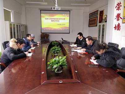 2019年12月4日上午9:00,化学工程学院党总支“不忘初心、牢记使命”中心组第四次学习在行政楼901举行。参会人员有化学工程学院党总支领导班子,教师党支部和学生党支部书记,各科室科长。