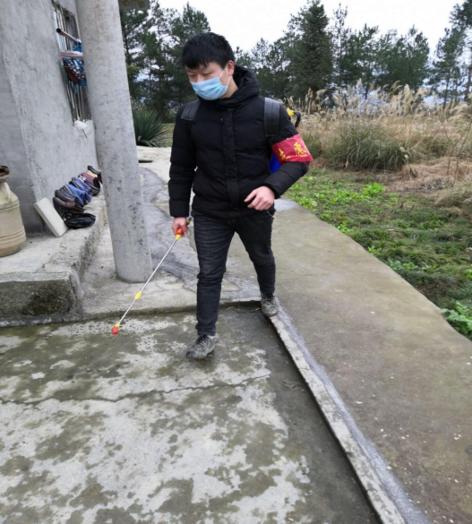 在贵州省桐梓县狮溪镇殷家坝村,疫情发展迅速,村里需要义务志愿者协助工作。化学工程学院能源171 班的张波同学首先报名,协助村干部做好村民出入登记、检测体温,进行消毒工作,宣传防疫知识。他说:“作为一名化工学子,一名退伍军人,在这次疫情中,能为父老乡亲贡献自己的力量,让我更有激情和信仰。虽然我们不在武汉,但是我们在中国这片大地上,我们会一直为武汉鼓劲加油,为中国鼓劲加油!”