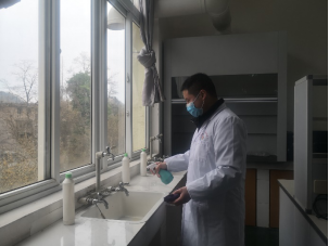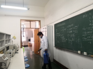 在第一实验楼化学工程学院实验教学中心,老师们对办公室及需要进入的实验室进行了消毒工作。“我们做了实验室消毒工作方案报告,经领导审核同意包括实验员在内的18位老师在做好安全的情况下,可提前进入实验室准备新学期实验教学准备工作及开展科学研究。现在实验中心已完成配制75%乙醇溶液,并对实验室、办公室区域进行消毒”。韦德举老师说。