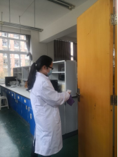 虽然未能正常返校工作,但实验室老师们均于2月28日前就返回贵阳待命,在家进行前期准备工作。蒋东海老师、魏娴老师、周理明老师和各课程组确认实验项目,相互沟通实验细节,认真核算各个实验项目所需的实验药品及耗材的种类及用量;朱芸莹老师核对库存情况和本学期需求,预定药品和耗材;韦德举老师组织商讨学生返校后实验室消毒方案,根据各类消毒剂特点和实验室实际情况,进行分类消毒,预定消毒物资。为保证实验仪器能正常使用,申请在做好防护措施的情况下提前进入实验室进行仪器调试。