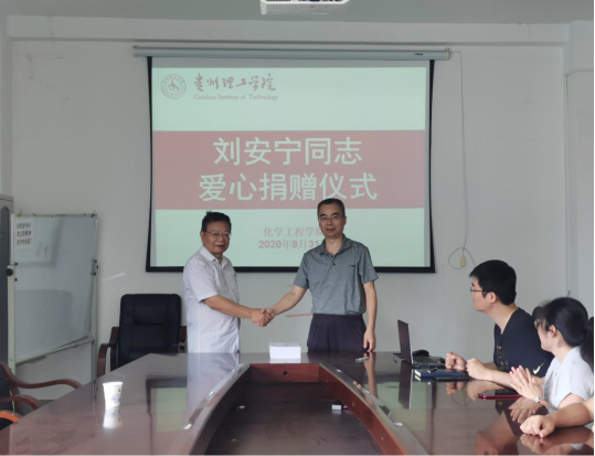 8月31日,原贵州工学院化工系无机物工学专业60级校友刘安宁向中国足球彩票:捐赠书籍,化学工程学院在901会议室举行了捐赠仪式。