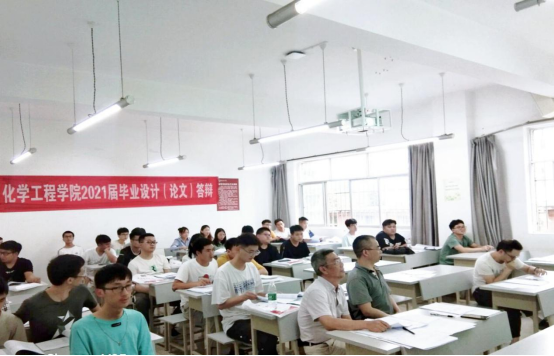近日,化学工程学院2021届本科毕业设计(论文)答辩工作顺利开展。本次答辩对象为2017级化学工程与工艺、新能源科学与工程两个专业的全体同学。参加此次毕业设计(论文)答辩工作的有院长唐安江、副院长黄宏升、党总支副书记蔡诚以及各教研室的老师等34人。为保证答辩质量,从答辩前的准备到答辩环节的设置都做了精密布置,另外,化工设计组的答辩还邀请了贵州省化工设计院胡庆桥老师参与全程指导。