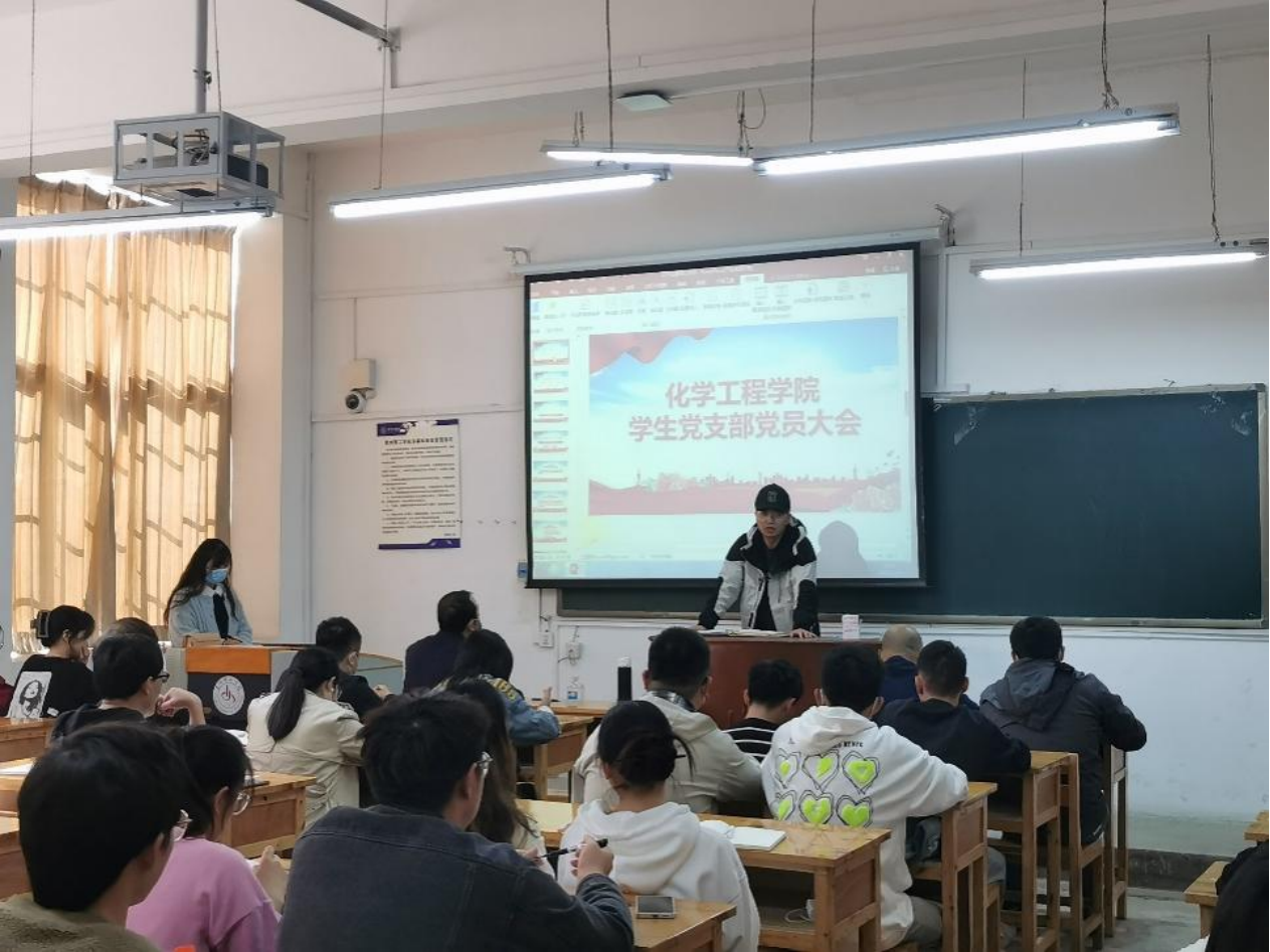 首先,化学工程学院党总支书记宋明江提出,让学生党员充分发挥先锋模范带头作用,提出“将支部建在班级上、课堂上、寝室中”,强调同学们要在维护安全稳定上担当作为,在政治安全、经济安全和生命安全上做楷模,同时要在思想、生活中严格要求自己,要在学习、升学、就业上做标兵。