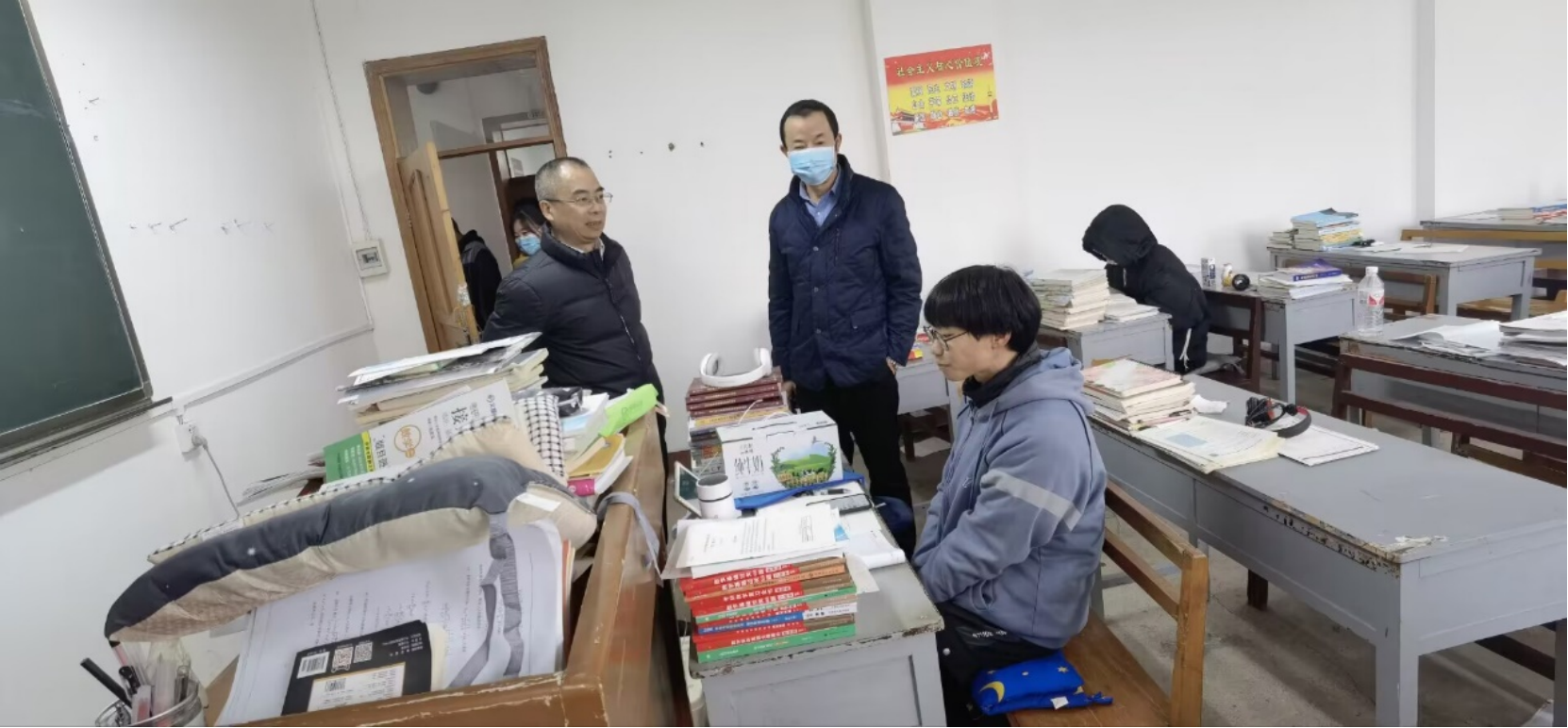 2022年12月8日上午,化学工程学院备上暖冬礼品,对2023届考研学子进行祝福慰问,学院党总支书记宋明江、院长唐安江、党总支副书记蔡诚、副院长黄宏升等来到第一教学楼化工考研自习室、实验楼,看望考研学子们。