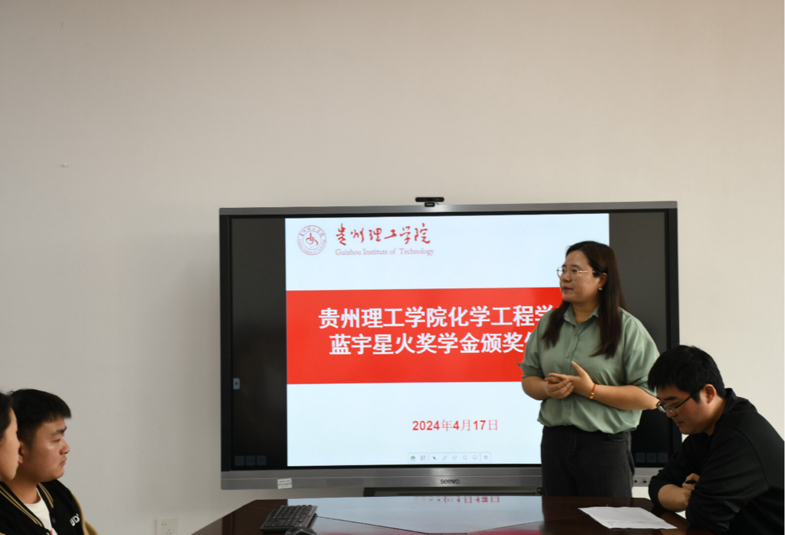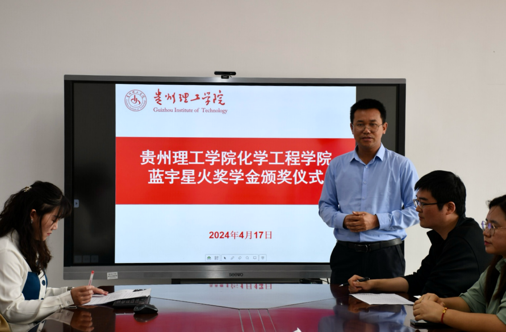2024年4月17日,贵州理工学院化学工程学院“蓝宇星火奖学金”颁奖仪式在酝知楼539会议室举行。浙江蓝宇数码科技股份公司人事经理朱俏萍,化学工程学院党总支书记宋明江、副院长黄宏升出席了颁奖仪式。