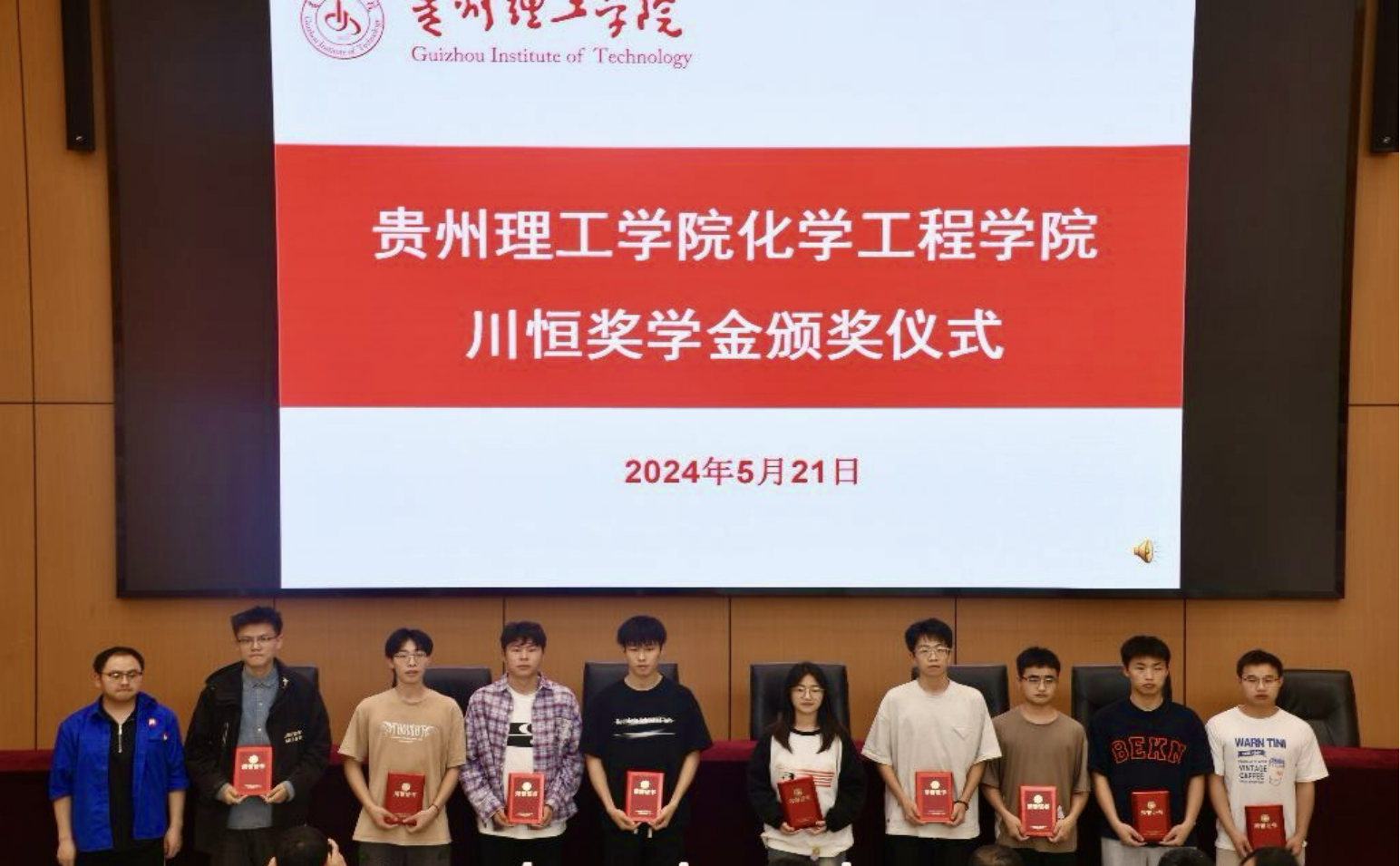 2024年5月21日下午,化学工程学院在图书馆报告厅举行了“川恒奖学金”颁奖典礼。贵州川恒化工股份有限公司人力资源总监文利、工程师柏帆、研发员刘涛,化学工程学院党总支书记宋明江、党总支副书记蔡诚、副院长黄宏升、仇伟出席大会。此次活动旨在表彰在学业、科研、社会实践等方面取得优异成绩的学生,并鼓励全院学生积极进取,追求卓越。