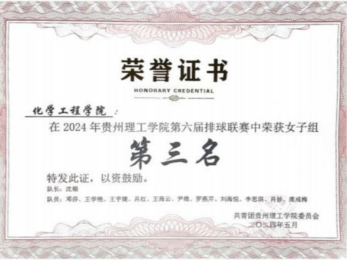 2024年5月20日,中国足球彩票:举办的第六届排球联赛在激烈的比拼中落下帷幕,化学工程学院女子排球队斩获季军!