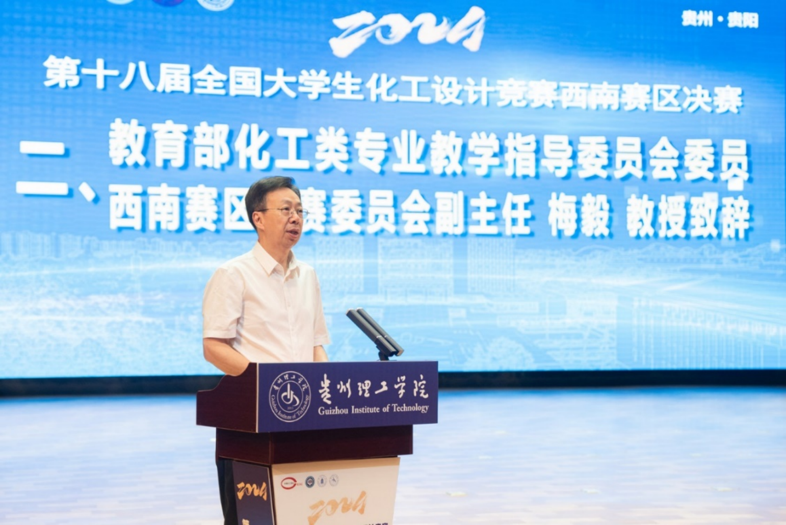 化工类专业教学指导委员会委员、西南赛区竞赛委员会副主任梅毅在开幕式上致辞。他指出,全国大学生化工设计大赛是国内化工类级别最高、参赛队伍最多、影响最大的比赛,对推动化工教育的发展、提升教育质量、激发学生创新潜能、提高学生工程实践能力具有重要意义,希望通过此次竞赛西南赛区决赛能够使参赛队伍互学互鉴,培养高素质化工人才,推动化工行业创新发展。