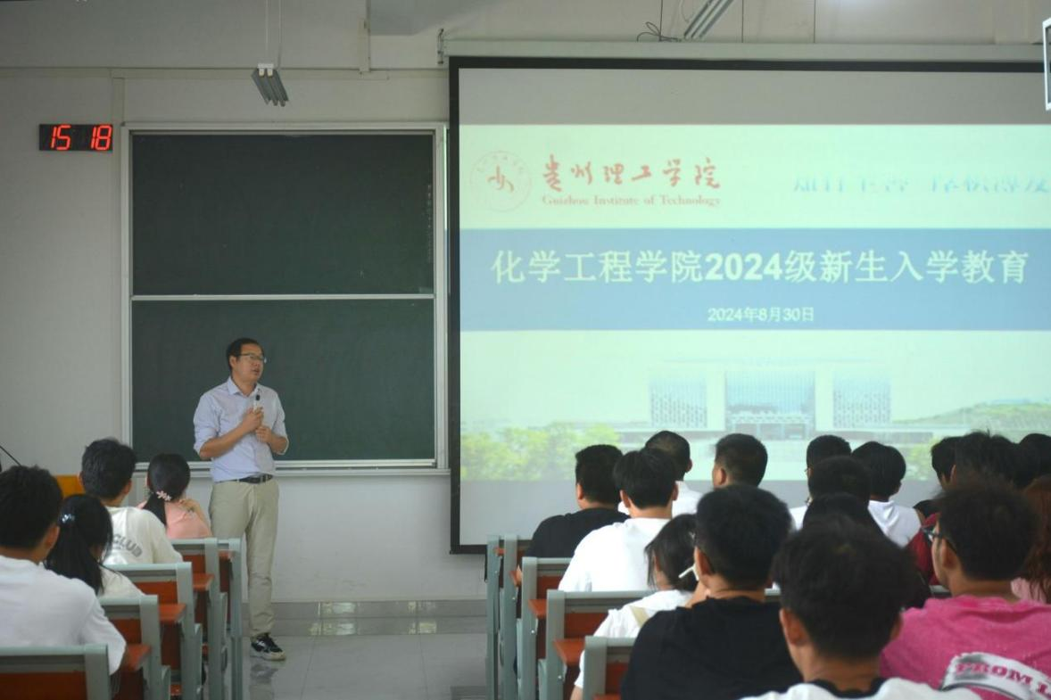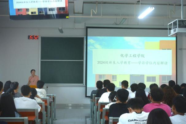 为帮助2024级新生尽快适应大学的学习和生活,明确学习目标和专业发展方向,做好大学四年学业规划,化学工程学院于2024年8月30日下午在酝知楼241教室举行了2024级新生入学教育大会,学院领导班子全体成员、学生科、教学科研科、各教研室、2024级班主任辅导员老师出席大会。