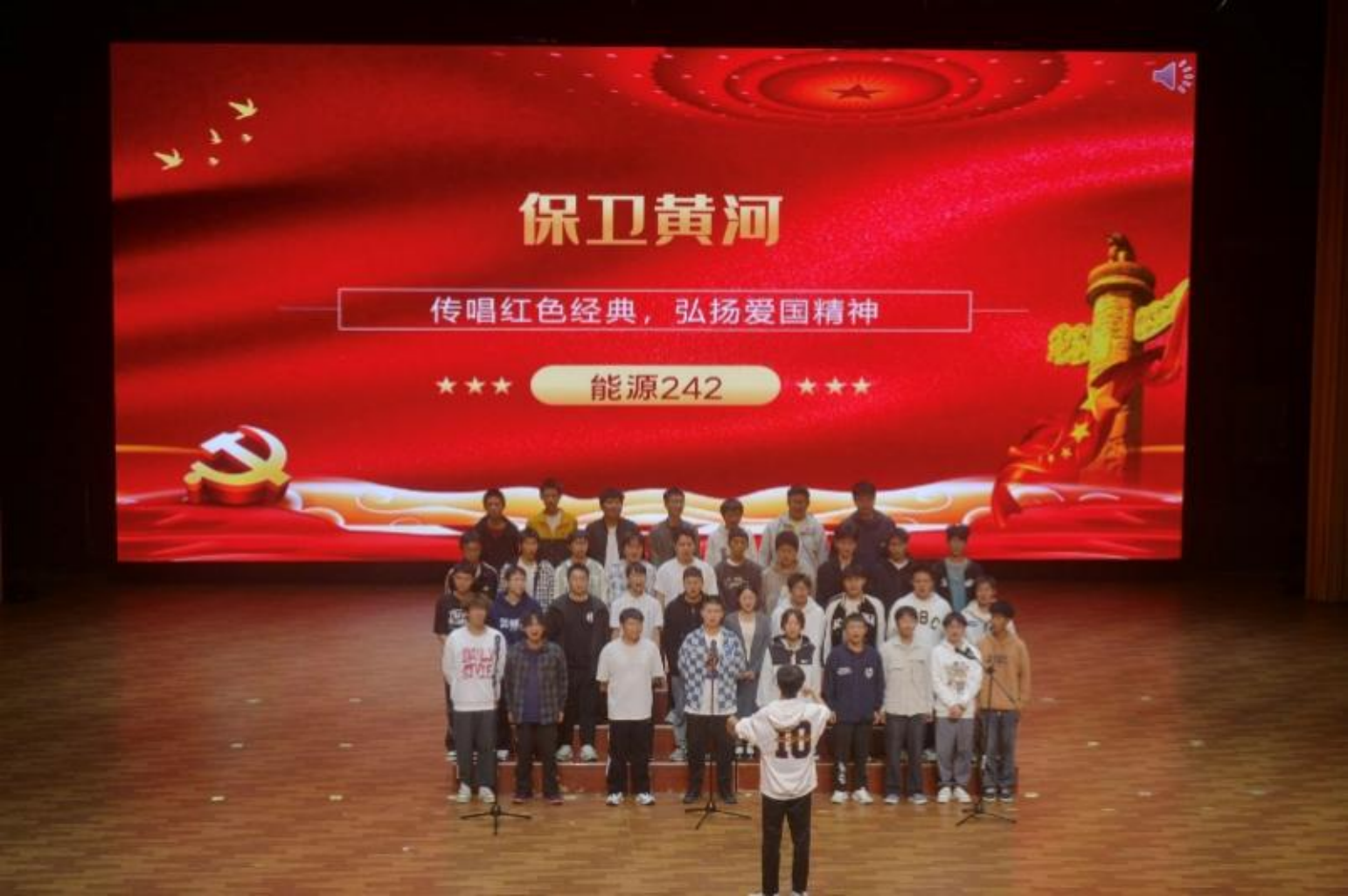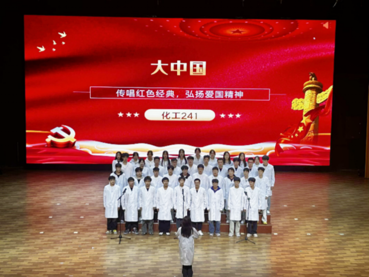 随着主持人宣布比赛正式开始,各班依次上台表演。一首比赛必唱歌曲:校歌《莫负好时光》,传达同学们把握当下、珍惜在贵州理工学院学习时光的精神体现。那一句句铿锵有力的歌词传达的不仅仅是对学校欣欣向荣的美好祝愿,更是表达了对国富民强的美好祝福。接着,化工241班《大中国》、化工242班《祖国颂》、化工243班《我爱你中国》,过控241班《我和我的祖国》,能源241班《歌唱祖国》、能源242班《保卫黄河》,一首首我们耳熟能详经典曲目轮番上演,歌声传达出同学们对祖国的热爱与祝福,赢得在场观众阵阵掌声。