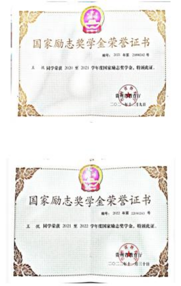 王悦,贵州理工学院2020级化学工程与工艺化工201班,现考入中国矿业大学(徐州)读研。在校期间,连续三年获得国家励志奖学金,连续三学年获得校三好学生,第六届全国大学生化工实验大赛西南赛区三等奖,曾获化工学院“体育标兵”,大学期间通过大学英语六级。