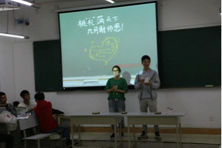 两位主持人首先为大家介绍了教师节的由来,期间主要介绍了在元朝与文革期间教师受到社会的歧视,被称为“臭老九”;再到第一个教师节的设立,教师正式受到了社会的认可,人民大众的爱戴。听完教师节的由来,学生代表上台发表感言,表达了对老师的敬佩和感恩之情。