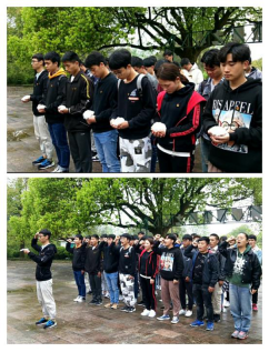 下午两点大家从山脚开始向海天园徒步前行,在沿途可见社会主义核心价值观等爱国主义宣传横幅,团支部书记王媛同学给大家讲解有关历史人物生平事迹,在边看、边听中,很快到达了贵州人民抗日战争纪念碑前。全体成员庄严整齐的伫立在人民抗日战争纪念碑下,在献词中表达了对先烈们的无限敬意,同学们为抗日先辈们献上鲜花,把心中对先辈们的敬佩与感激化作一个个庄严的鞠躬,然后大家手捧着精心制作的小白花为先辈们鞠躬尽瘁死而后已的奉献精神深深默哀,向抗日先辈致以敬意,并重温了中国共青团入团誓词。