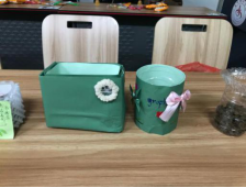 为了使本次主题学习落实到每一位同学,两个班级以寝室为单位寻找身边可利用的废品,重新给予它们生命,制作了各式各样的小花盆,并在活动现场进行评比,奇思妙想汇聚在一起,也让大家认识到废物利用是一件多么简单有意思且充满生命力的事情!最后,由班长为大家分发寝室责任小盆栽,实现美化校园从我做起的号召!