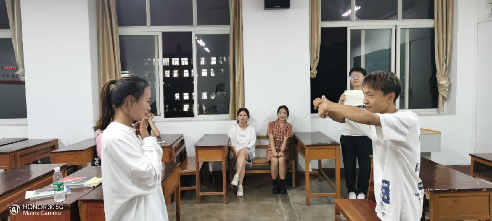 四人一组,两人比划,一人猜,最后一人抽提前准备好的字,三分钟内猜对多者获胜。同学们都积极参与进来,游戏中不仅增进了同学间的关系,同时体验了中国博大精深的文化。