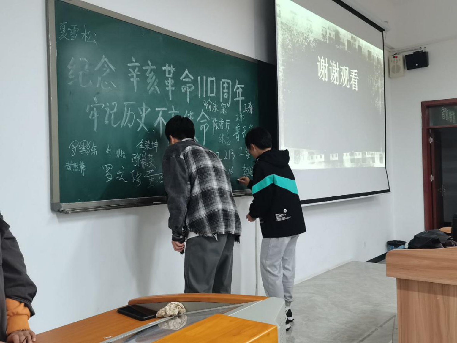 “为有牺牲多壮志,敢教日月换新天”,今时今日的幸福生活,是由先辈们的英勇抗争所创造的。在辛亥革命110年后的今天,我们一起铭记历史,歌颂英雄!在写有“牢记使命,不忘历史”的黑板上,同学们纷纷签署上自己名字。至此,此次学习“铭记辛亥,青年责任”主题团日活动圆满结束。此次活动加强了同学们对辛亥革命历史意义及其革命先辈英勇事迹的了解,更增强了青年一代学子对党和国家的认识,为实现民族复兴持续奋斗,在未来道路上与国家发展和民族振兴同向同行!