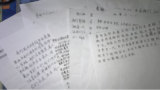 图为同学们写给革命先辈的一封信