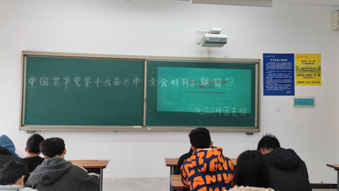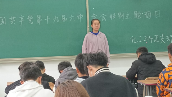 11月8日至11日,中国共产党第十九届中央委员会第六次全体会议在北京召开。为贯彻落实好党的十九届六中全会精神,11月28日上午,化工214班在G1204教室化工214团支部组织召开了十九届六中全会特别主题团日活动,化工214全体同学参加了本次活动共同学习了本次会议精神。