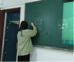 为了使同学们更好的铭记伟人,牢记使命,周雨晨同学组织同学们上台画出自己心中的伟人。最后,由同学们投票排出作品的名次。