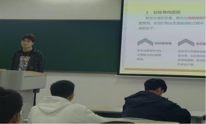 5.“就业领航,筑梦未来”:由张震同学为大家讲解就业领航PPT,阐述了我们作为新时代大学生应该怎样选择职业和怎样解决就业所遇到的困难,引领同学们把人生追求融入到祖国人民和时代的需要之中。
