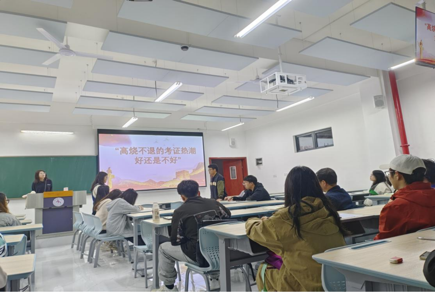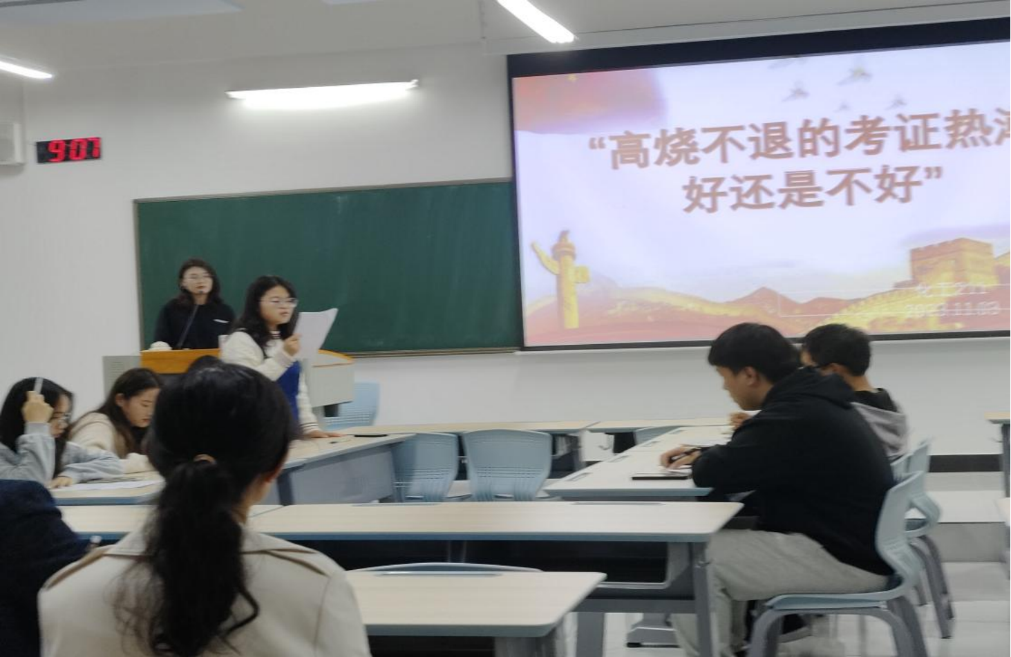 为了加深同学们对社会热点问题的理解和认识,丰富同学们的课余活动,增强同学们之间的交流,化工211班于2023年11月3日在B01-208教室举行了以“高烧不退的‘考证热’是好还是不好?”为主题的辩论会。