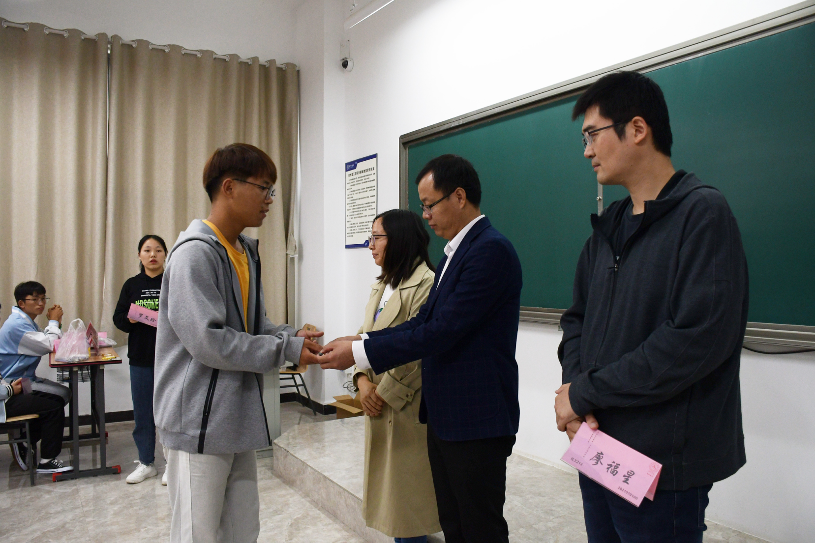 第二项,学院各位领导、老师为学生授笔赠送桌牌校牌;第三项,全体师生合影留念。