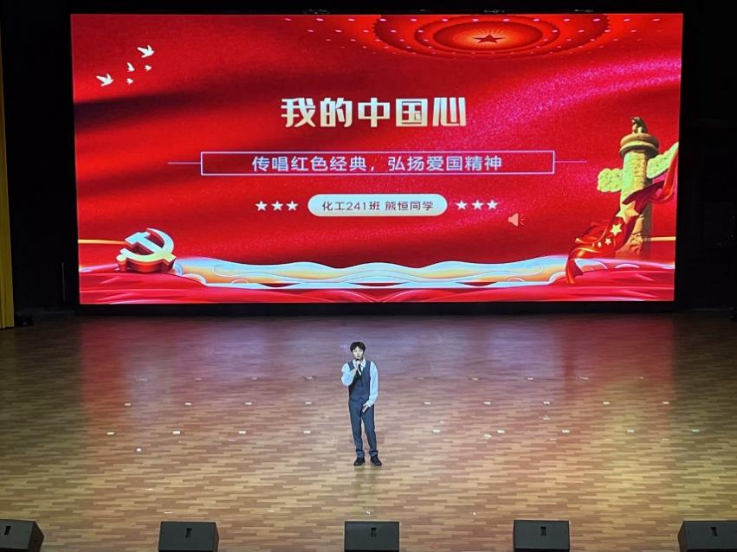 此外,化工241熊恒同学独唱《我的中国心》,观众们被深深打动,报以热烈的掌声与欢呼声;罗孜老师精彩陶笛演奏《故乡的原风景》,使在场所有人无不拍手叫绝;能源241班李佳乐、王艺达等同学的深情朗诵《爱国,永恒的乐章》也赢得观众们阵阵掌声。
