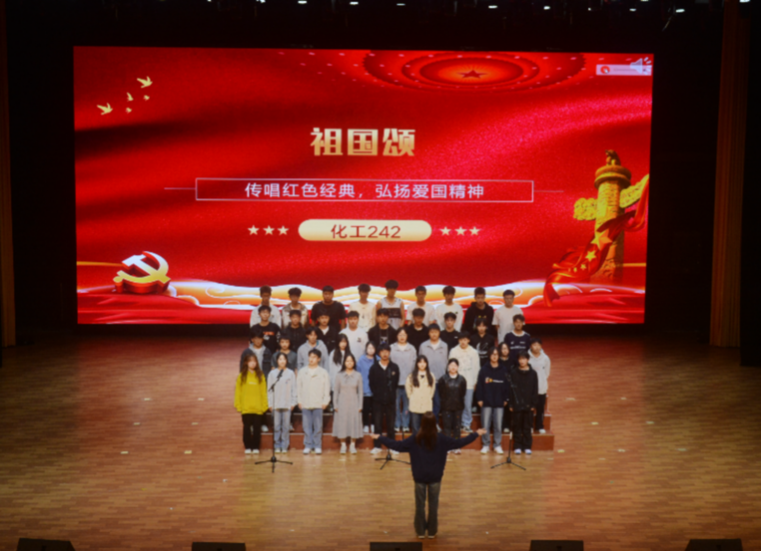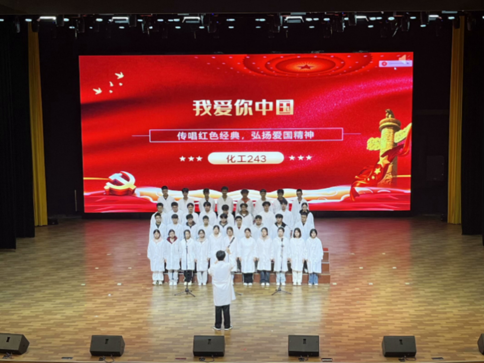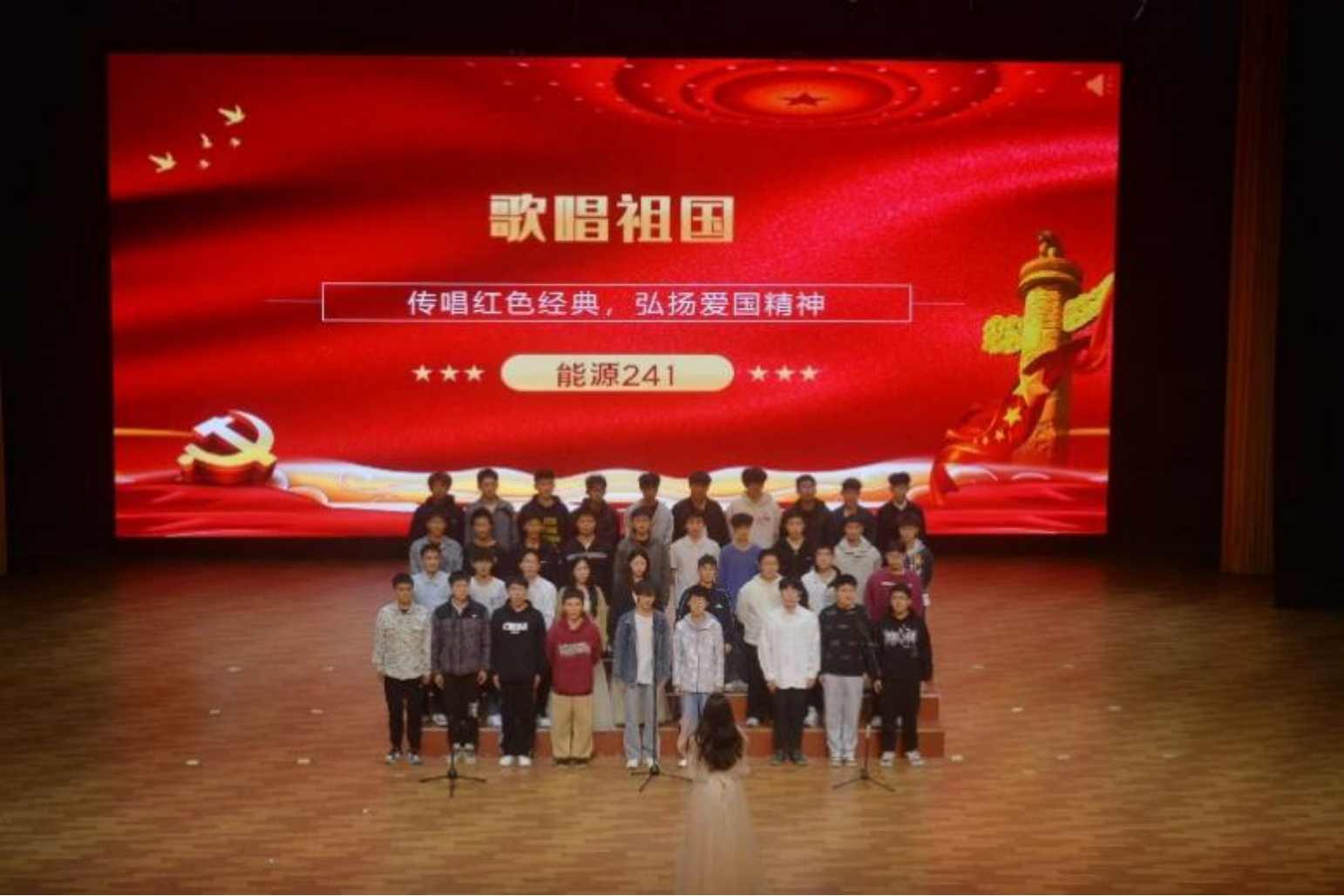 随着主持人宣布比赛正式开始,各班依次上台表演。一首比赛必唱歌曲:校歌《莫负好时光》,传达同学们把握当下、珍惜在贵州理工学院学习时光的精神体现。那一句句铿锵有力的歌词传达的不仅仅是对学校欣欣向荣的美好祝愿,更是表达了对国富民强的美好祝福。接着,化工241班《大中国》、化工242班《祖国颂》、化工243班《我爱你中国》,过控241班《我和我的祖国》,能源241班《歌唱祖国》、能源242班《保卫黄河》,一首首我们耳熟能详经典曲目轮番上演,歌声传达出同学们对祖国的热爱与祝福,赢得在场观众阵阵掌声。