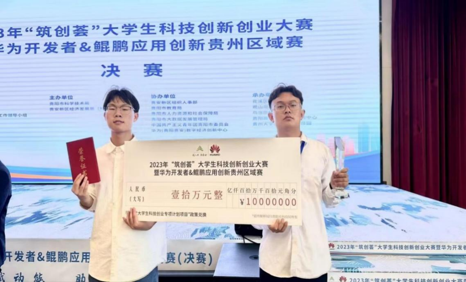 2023年“筑创荟”大学生科技创新创业大赛暨华为开发者&鲲鹏应用创新贵州区域赛由贵州省科学技术厅、贵州省教育厅、中共贵阳市委人才工作领导小组指导,贵阳市科学技术局、贵安新区经济发展局主办,来自全国22个创新创业项目进入决赛并均获得大学生科技计划项目10万元支持。