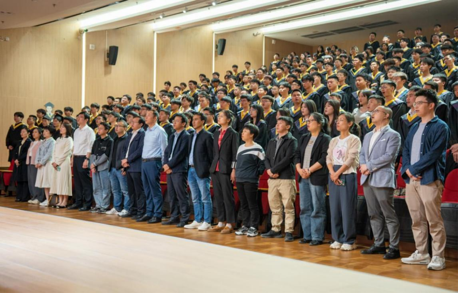 最后,全体毕业生齐唱校歌:《莫负好时光》,至此,化学工程学院2024届本科生毕业典礼圆满落幕,这是他们告别校园生活,迈向社会新篇章的重要时刻。来日方长暂作别,循光而往踏歌行,让我们祝福他们,祝福他们前程似锦,愿化学工程学院2020级每一位同学在这明亮如初的日子里扬帆起航,奔向五彩斑斓的未来!