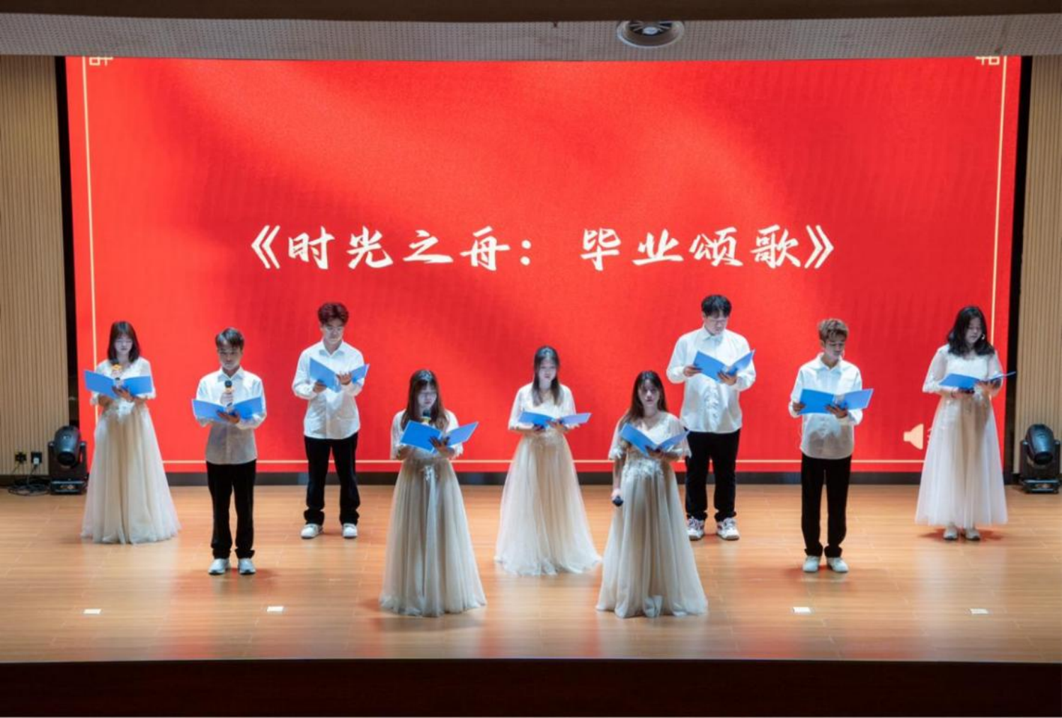 毕业典礼上,低年级的同学们为即将离校的毕业生精心编排了一场文艺表演。唱歌、朗诵、舞蹈轮番上演,展现了青春活力,也传递了对他们的不舍与祝福。