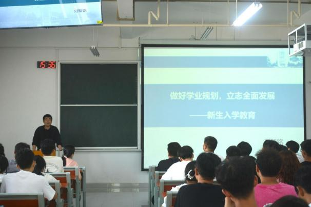 学院院长黄宏升为新生介绍了学院师资队伍、专业建设、教学科研、学生成果等情况,并指出,步入大学,要明确目标,自主学习、自主思考、自主判断,深入了解学院、专业的优势,积极探索,努力成为创新型人才。