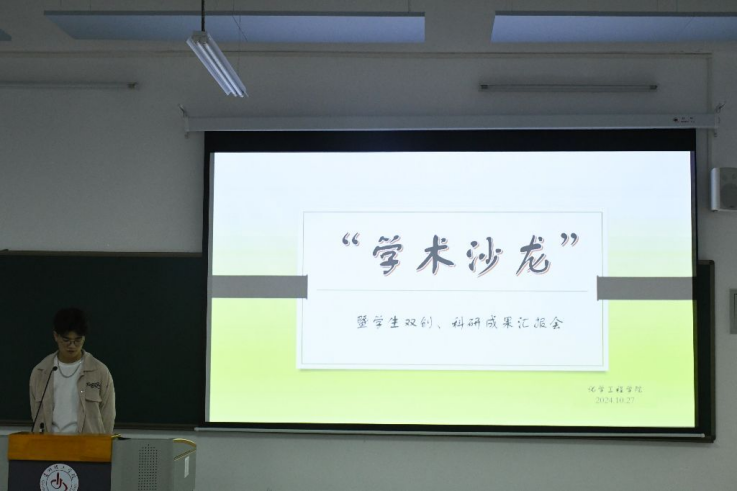 10月27日下午,化学工程学院“学术沙龙”暨学生双创、科研成果汇报会顺利举行。化学工程学院院长黄宏升、实验员郑佳出席。汇报人有张震、杜勤、张文轩、甘精冀、袁园、罗凤姣、李文彬、都依楠、罗小龙、吴小雨、罗昌利、饶晨昊、郑欣尧。