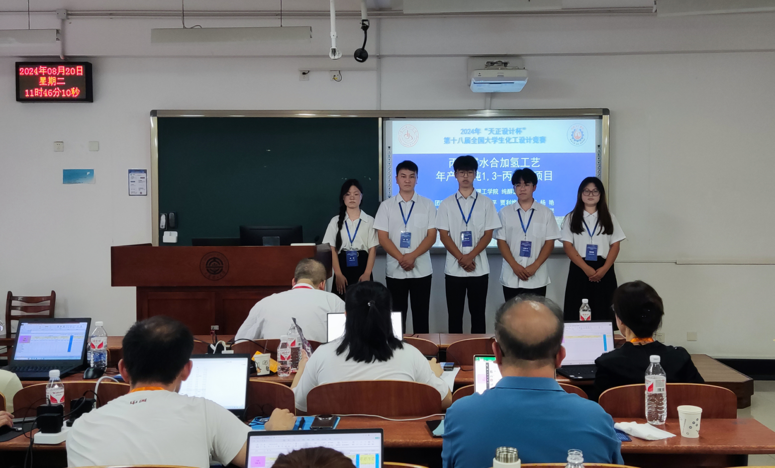 全国大学生化工设计竞赛立足于化工基本理论,激发大学生的创新思维,锻炼大学生的工程技能和团队协作精神,增强大学生的工程设计与实践能力,是我国化工类专业级别最高、参与人数最多、影响力最大的学科竞赛,是展现化工类专业大学生综合素质和创新能力的重要舞台。该赛事已经连续举办18届,竞赛题目均来源于国内化工行业重大战略需求,具有鲜明的工程背景和化工特色。本届大赛的题目是“为某大型化工企业设计一座1,3-丙二醇清洁生产的分厂,要求技术符合我国绿色低碳循环发展要求”。自3月启动以来,化学工程学院高度重视此项赛事,精心组织与指导“纯醇意动”团队以“福建东鑫石油化工股份有限公司年产5万吨1,3-丙二醇项目”为题,对该项目进行市场调研、厂址选择、可行性论证、工艺路线比选、工艺流程确定、流程模拟、设备设计与选型、自动控制、工厂与车间平立面布置、安全评价、环境评价、经济分析、清洁生产等几大模块进行可行的工艺和工程设计,使技术提升达到“中国制造2025”中提出的低碳绿色发展指标,进而利用三维建模软件对作品进行多维度展示,其设计作品具有“安全、环保、节能、创新、经济、可靠、实用”的鲜明特色。