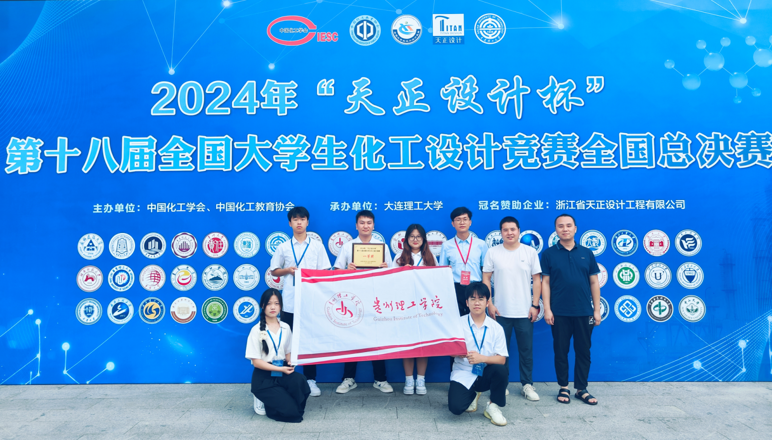 2024年8月16日-22日,第十八届全国大学生化工设计竞赛全国总决赛在大连理工大学顺利举行,贵州理工学院化学工程学院“纯醇意动”队(学生:徐辉、王孝平、贾利维、何小亭、杨艳,指导教师:曾谦、蒋东海、周理明、罗孜、李琴)取得突破,从本届参赛的450所高校近1.9万人组成的3685支队伍中脱颖而出,首次进入全国总决赛,并斩获一等奖!