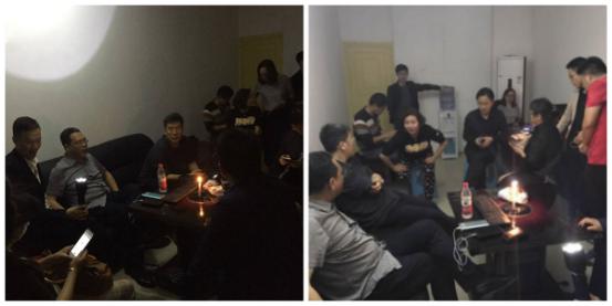 19日午夜,在点着烛光下寨办公室,龙校长主持召开了紧急会议,部署停电抢修期间的各项工作,学工部、各学院、保卫处、后勤管理处安排人员连夜值守,有情况第一时间向值班校领导汇报。20日上午6:50龙校长带队对学生情况进行摸排,各学院反馈学生上课出勤情况,教务处做好教学保障工作,并反馈教学保障相关情况。