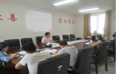 本网讯(后勤管理处 晏子锦/文,韦玲莉/图)为了不断夯实基层党建基础,加强处党总支党的组织建设,充分发挥党组织战斗堡垒作用和党员先锋模范作用。6月4日下午14:00,党委组织部委派谢海波老师对后勤教师党支部作党建工作培训和指导。党支部班子成员、处党总支书记及办公室主任参加了会议。
