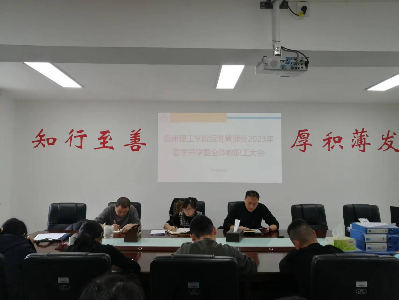 本网讯(后勤管理处易欣/文)为切实做好2023年春季开学后勤保障服务及防疫防控工作,确保学校各项工作顺利开展,后勤管理处于2月24日下午,在后勤楼会议室,召开后勤2023年春季开学工作会议。